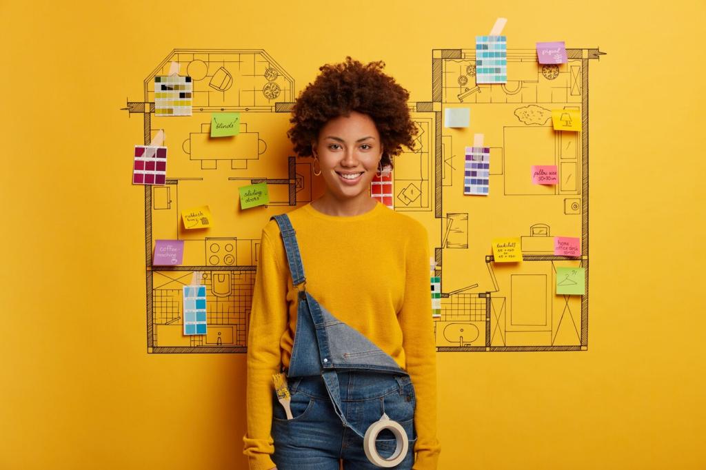 Farben entlang virtueller Kanten zu staffeln schafft Tiefe ohne 3D-Overload. Diagonale Highlights leiten den Blick, während matte Zonen Ruhe geben. Unsere Leser schwören auf reduzierte Paletten. Welche Rampen funktionieren für dich? Abonniere und diskutiere mit.